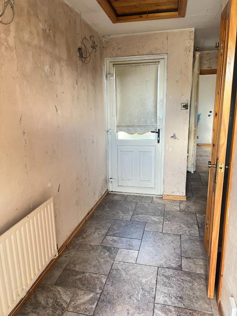 Pvc White front door with glazing. Tiled floor. Access also to rear garden area.