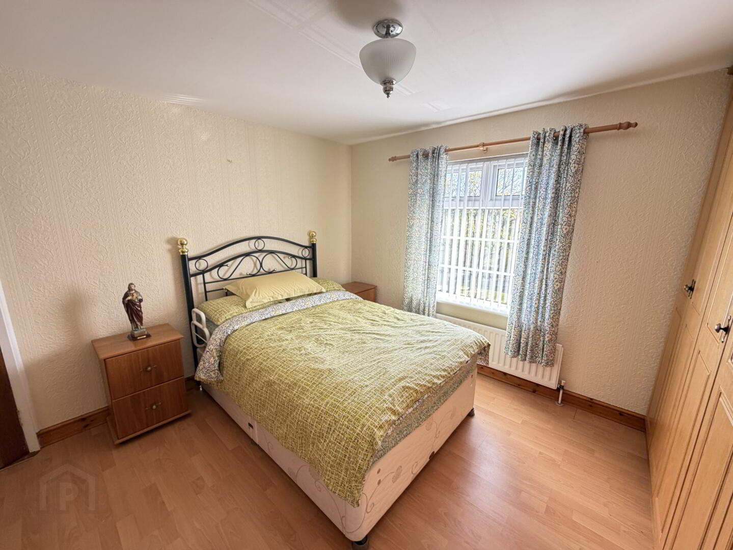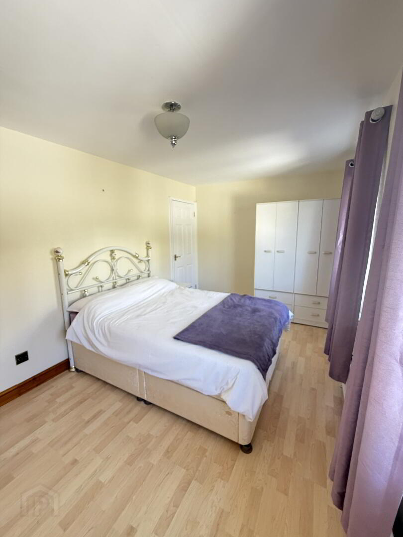 Double bedroom with rear view aspect. Built in wardrobe/hot press. Laminated wooden floor.