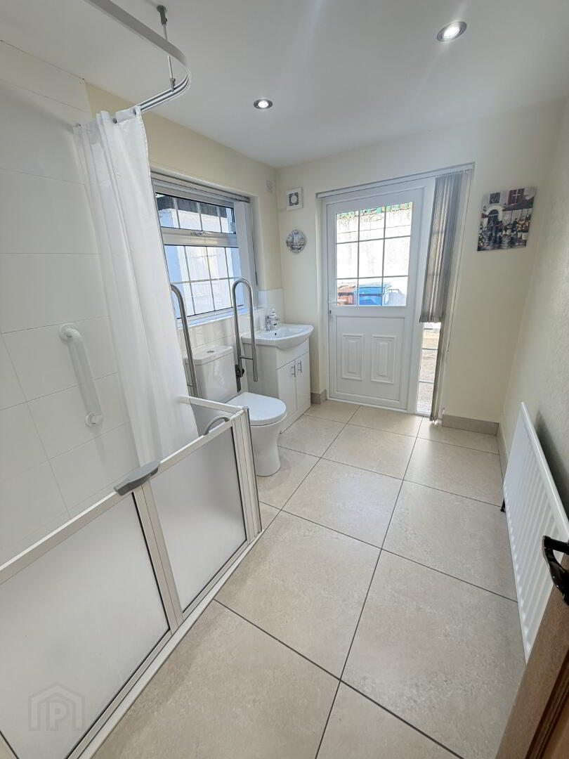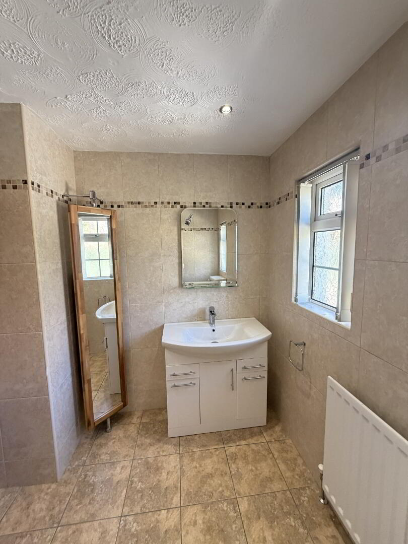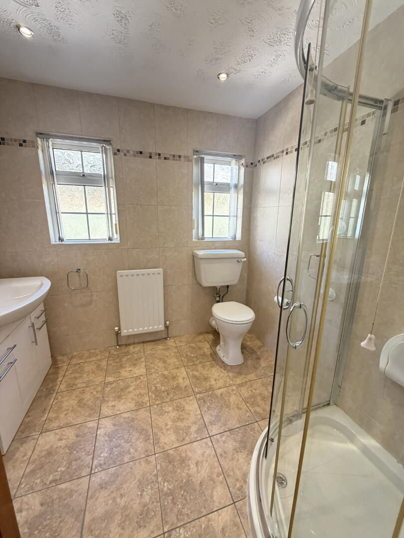 Three-piece white suite to include wash hand basin, low flush wc and shower unit. Fully tiled floor and walls. Extractor fan. Pvc rear back door with glazing leading to rear garden area.