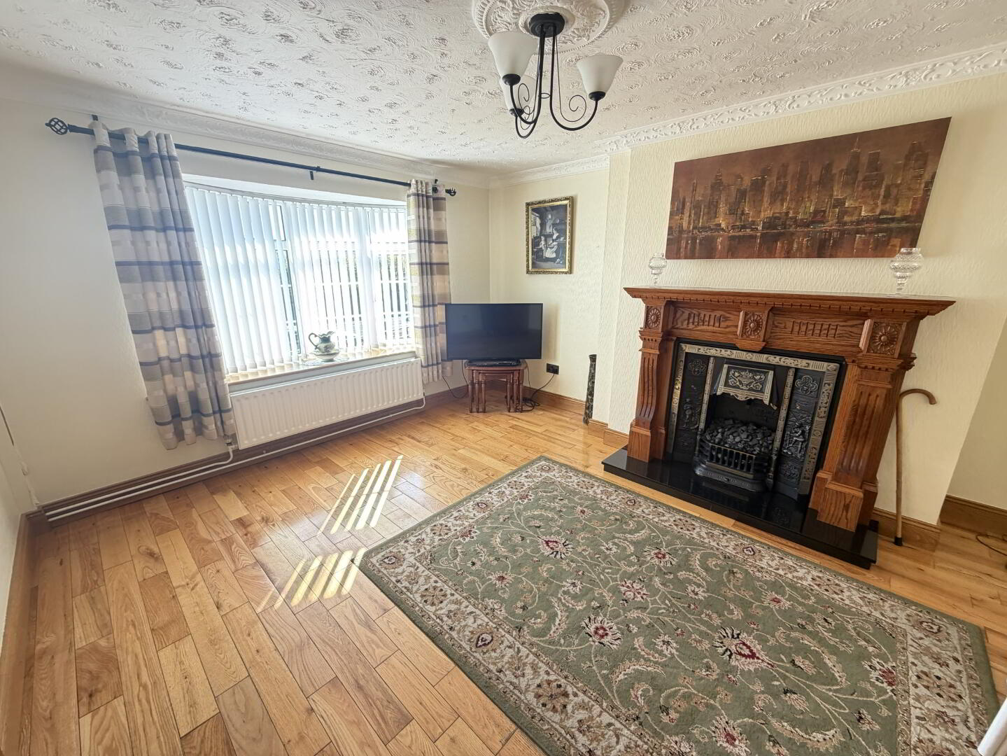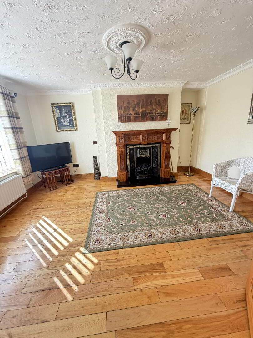 Large family room with front view aspect. Bay Window. Pine fireplace with cast iron inset and marble hearth. Solid Wooden floor. Coving. Centre Piece.