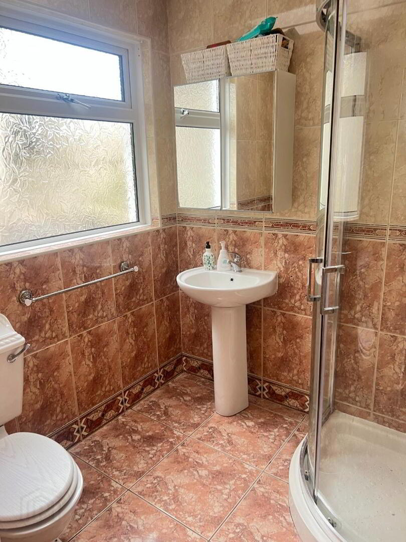 Three-piece white suite to include wash hand basin, shower unit and low flush wc. Fully tiled floor and walls. Electric Shower. Extractor fan.