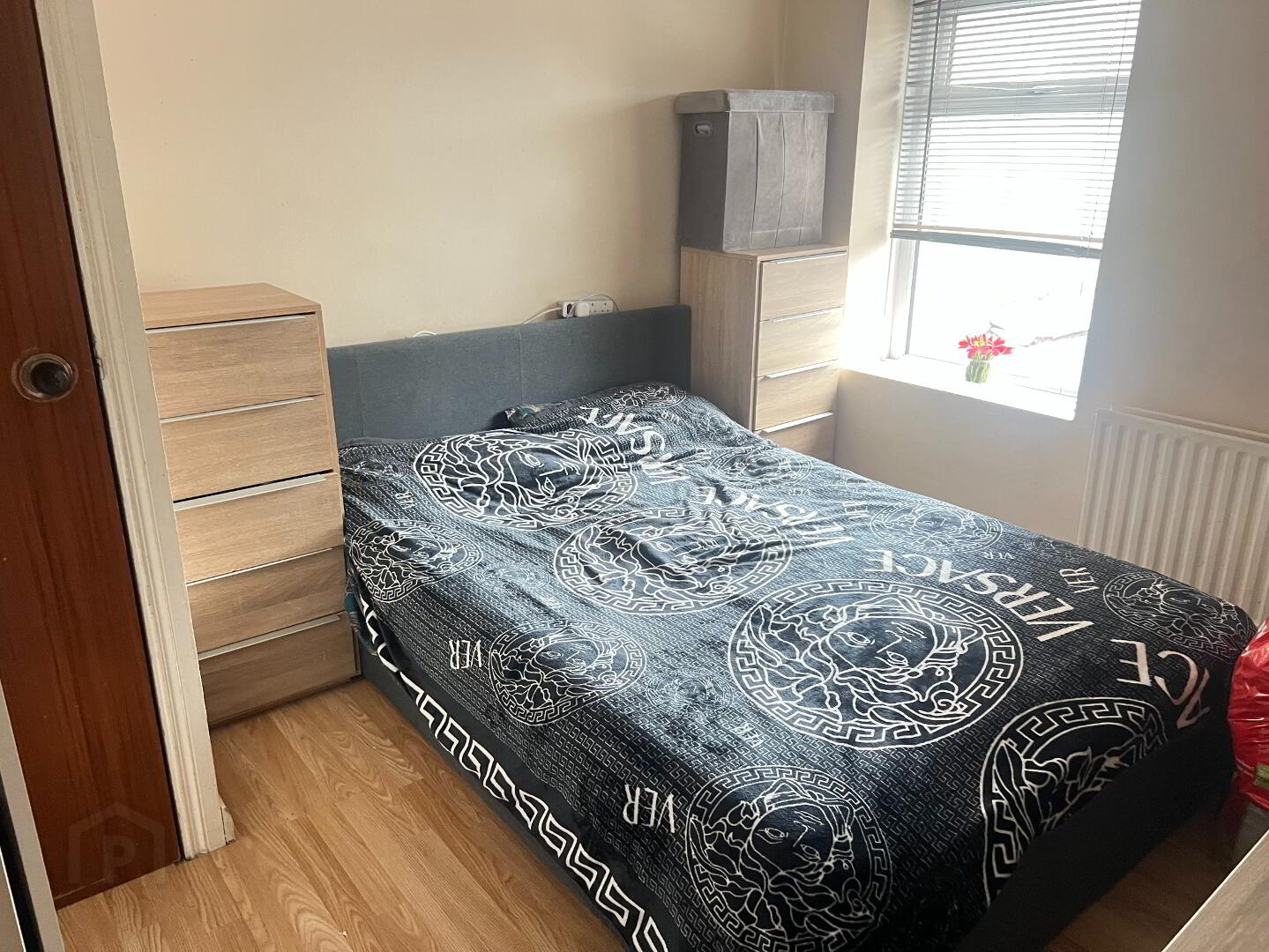 Double Bedroom with front view aspect. Laminated wooden floor.