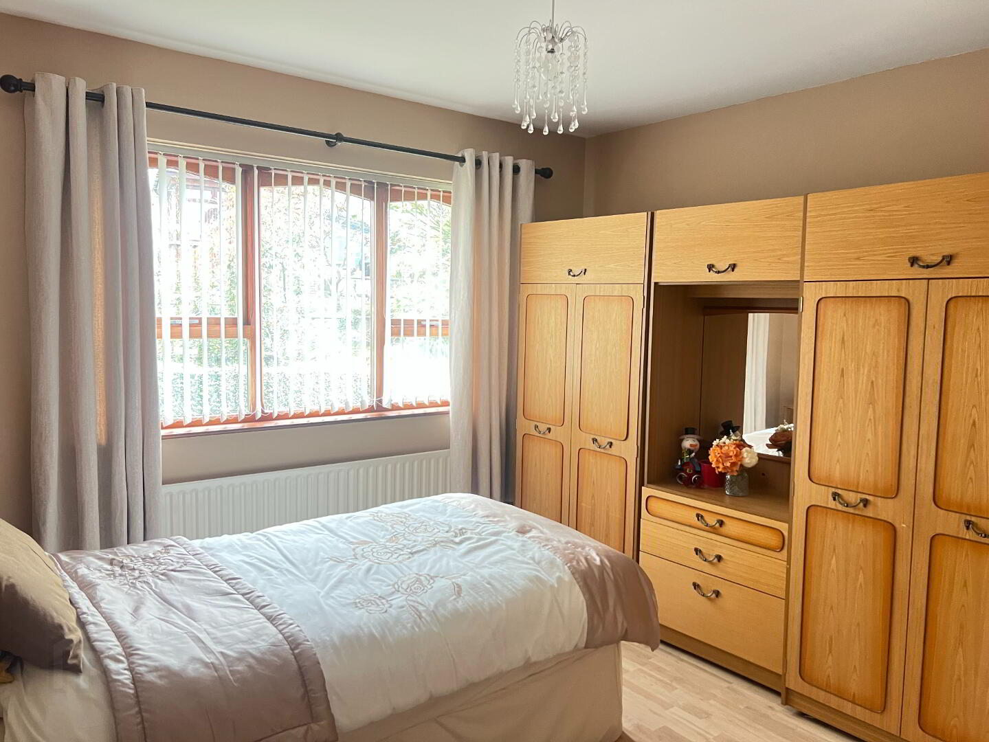 Large double bedroom with front view aspect. Laminated wooden floor.