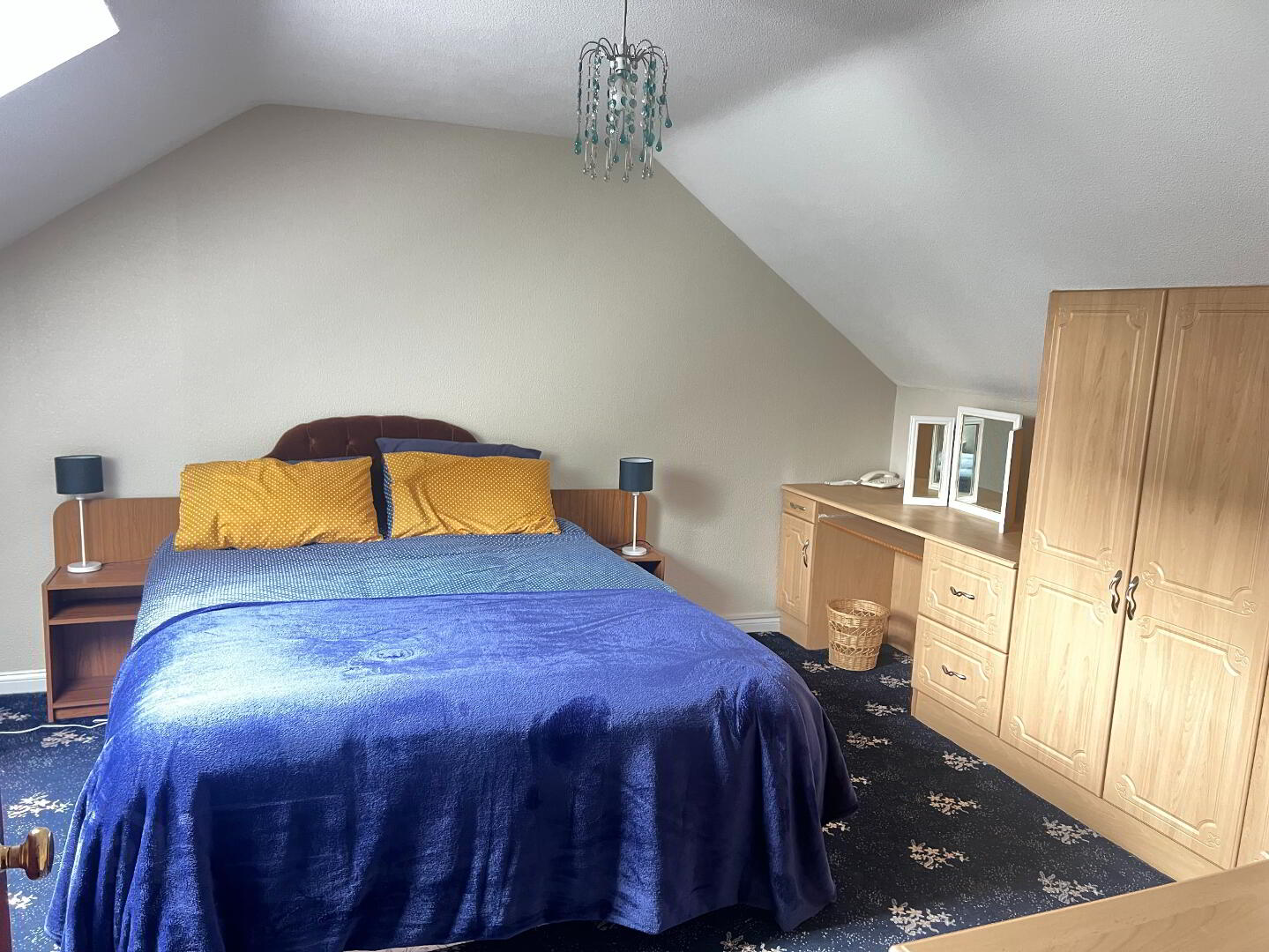 Large double bedroom with skylight window. Built in wardrobes. Vanity desk unit. Shelving and railing Fixtures. Currently used as a walk-in wardrobe.