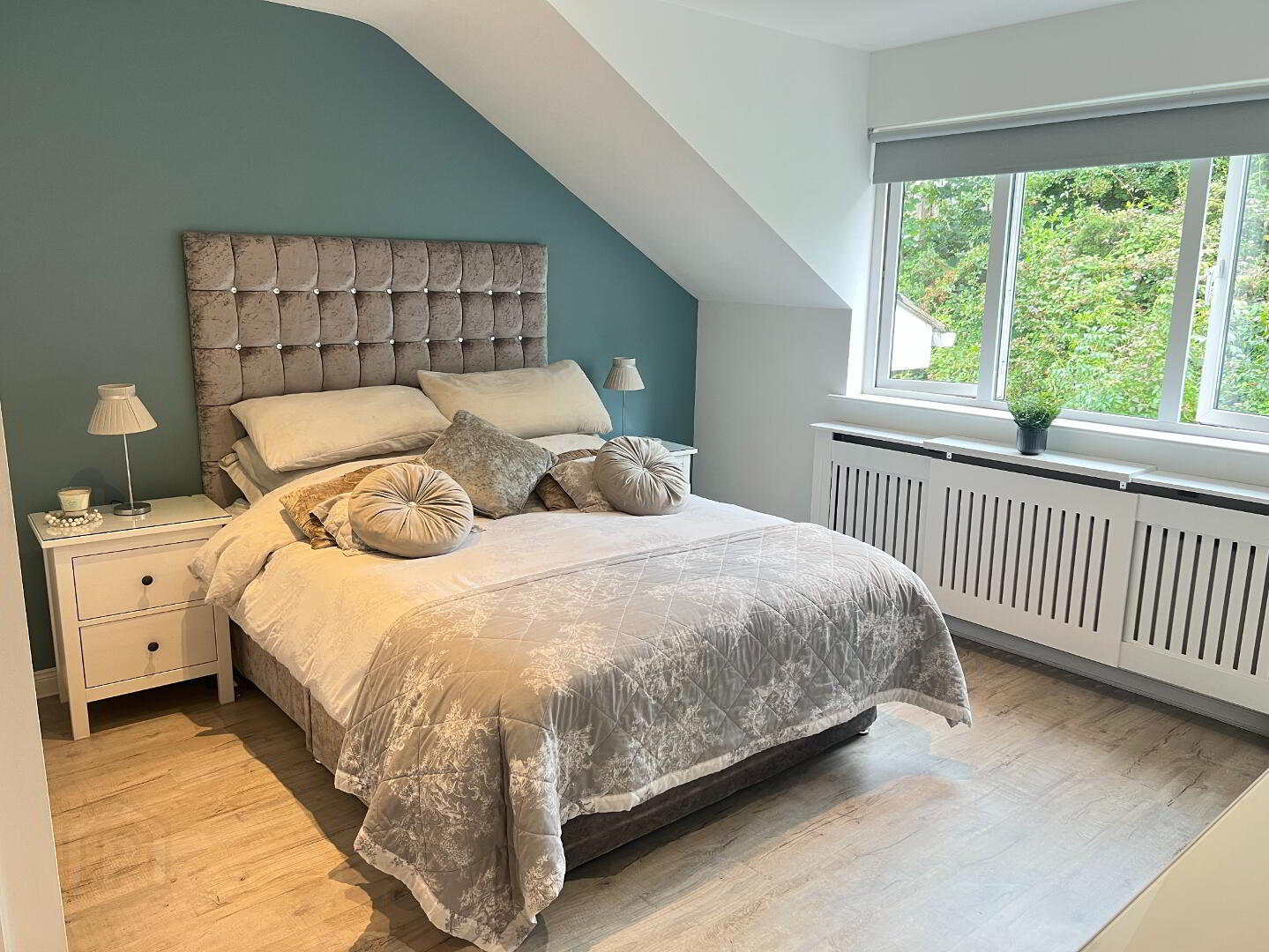 Large Double Bedroom with rear view aspect. Laminated wooden floor.