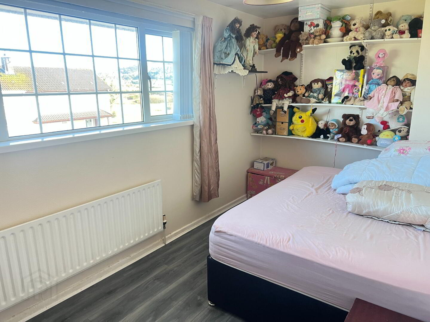 Double bedroom with front a view aspect. Laminated wooden floor. Built in wardrobe.