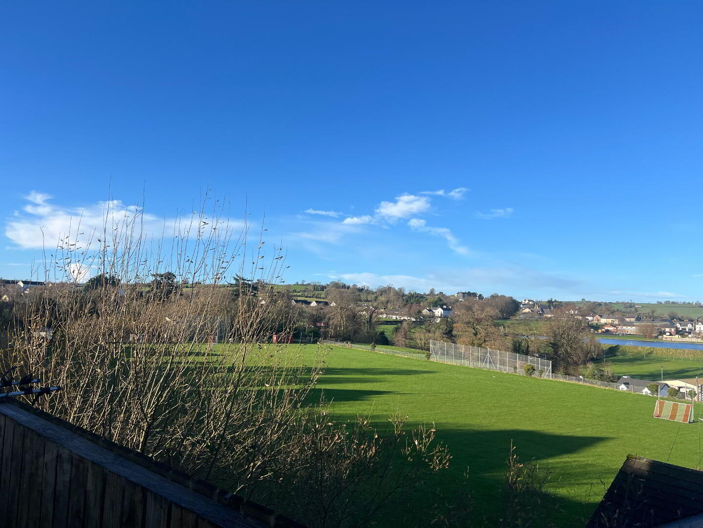 Gravel driveway to front. Two parking spaces. Enclosed private rear garden area laid in full decking.  Countryside views.  Shrubbery.